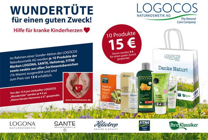 Die Salzhemmendorfer LOGOCOS Naturkosmetik AG zählt seit vielen Jahren zu den Förderern des Vereins, „Kleine Herzen – Hilfe für kleine Kinderherzen. Das Unternehmen, das seine Marketingabteilung an der Plaza hat, schnürt alljährlich Wundertüten mit Naturkosmetik-Produkten und verkauft sie bei öffentlichen Charity-Aktionen zugunsten der „Kleinen Herzen“.